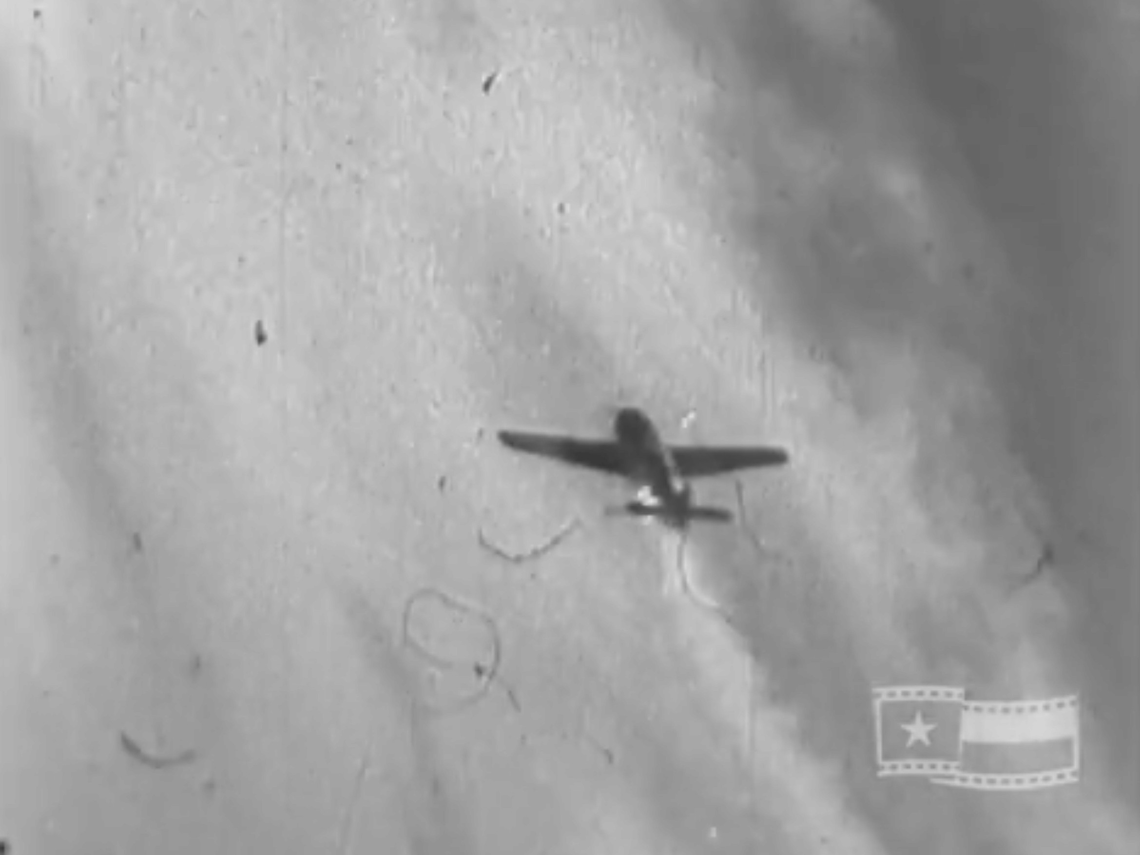 Screenshots from the footage captured by the Gun Camera mounted on Lt Col Jack Bradley’s P-51 Mustang between December 1943 to January 1944, published on Texas Archive of the Moving Image.